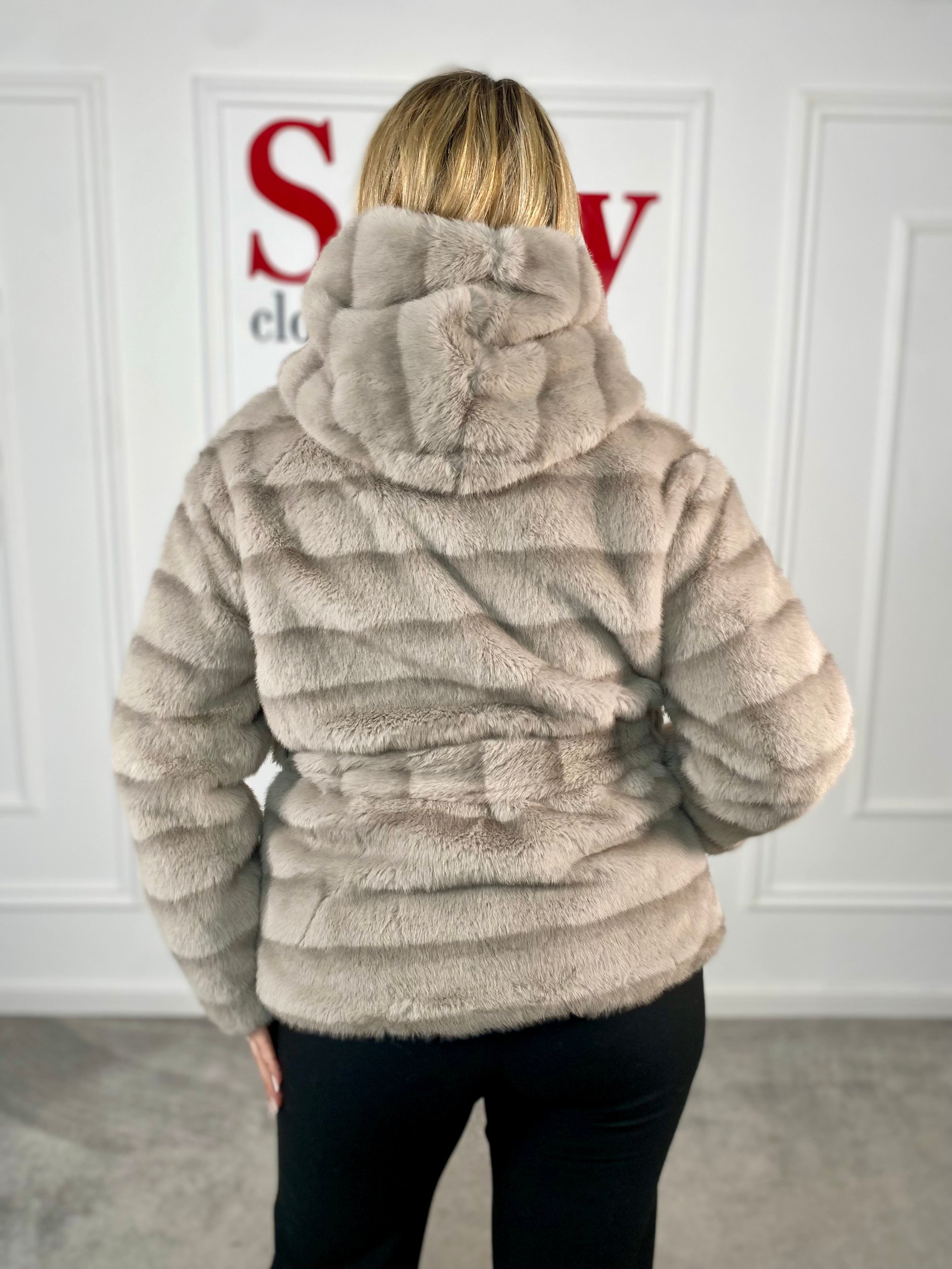 Modelul are 1,80 înălțime, 76 kg și poartă mărime universală.