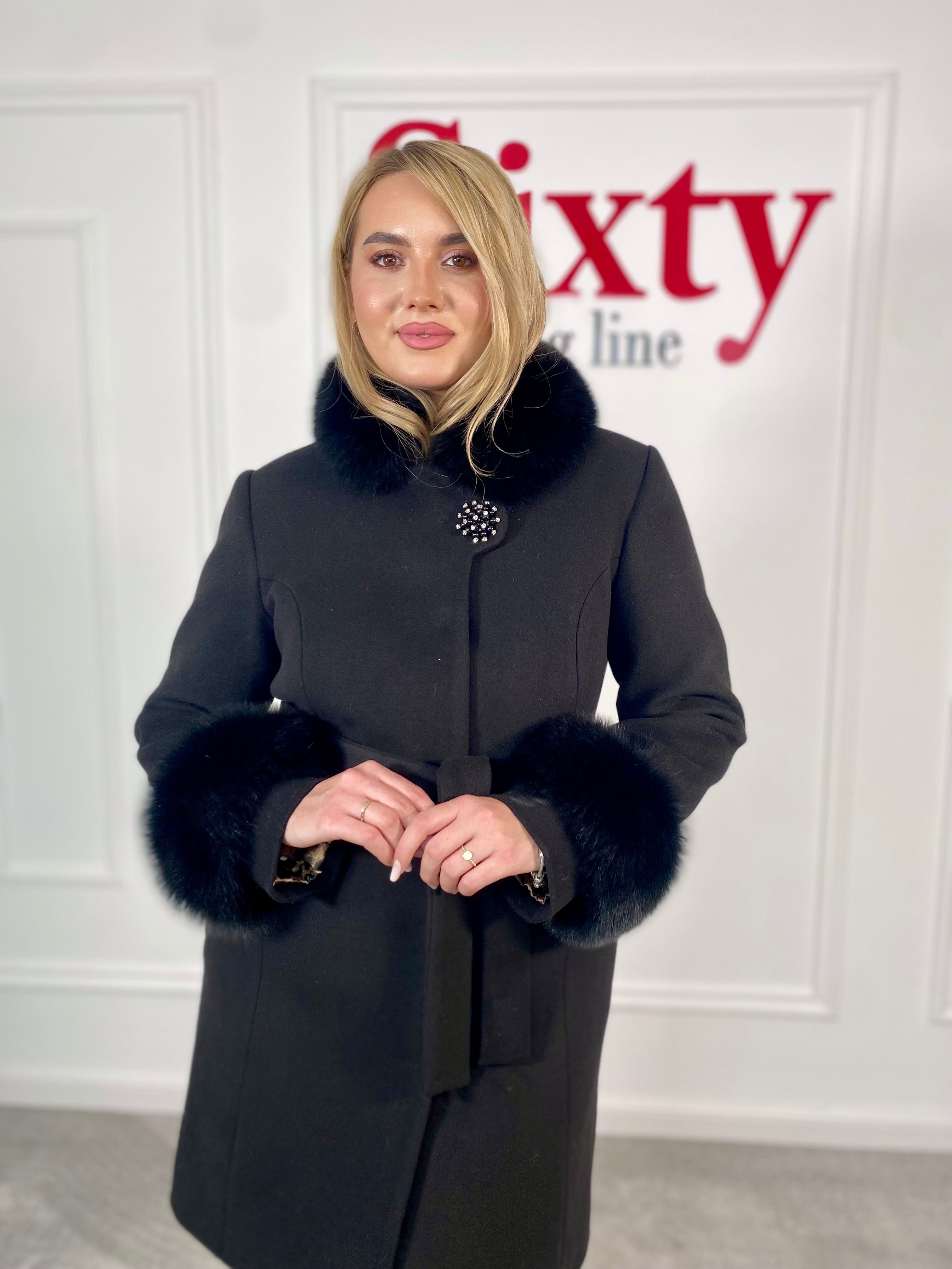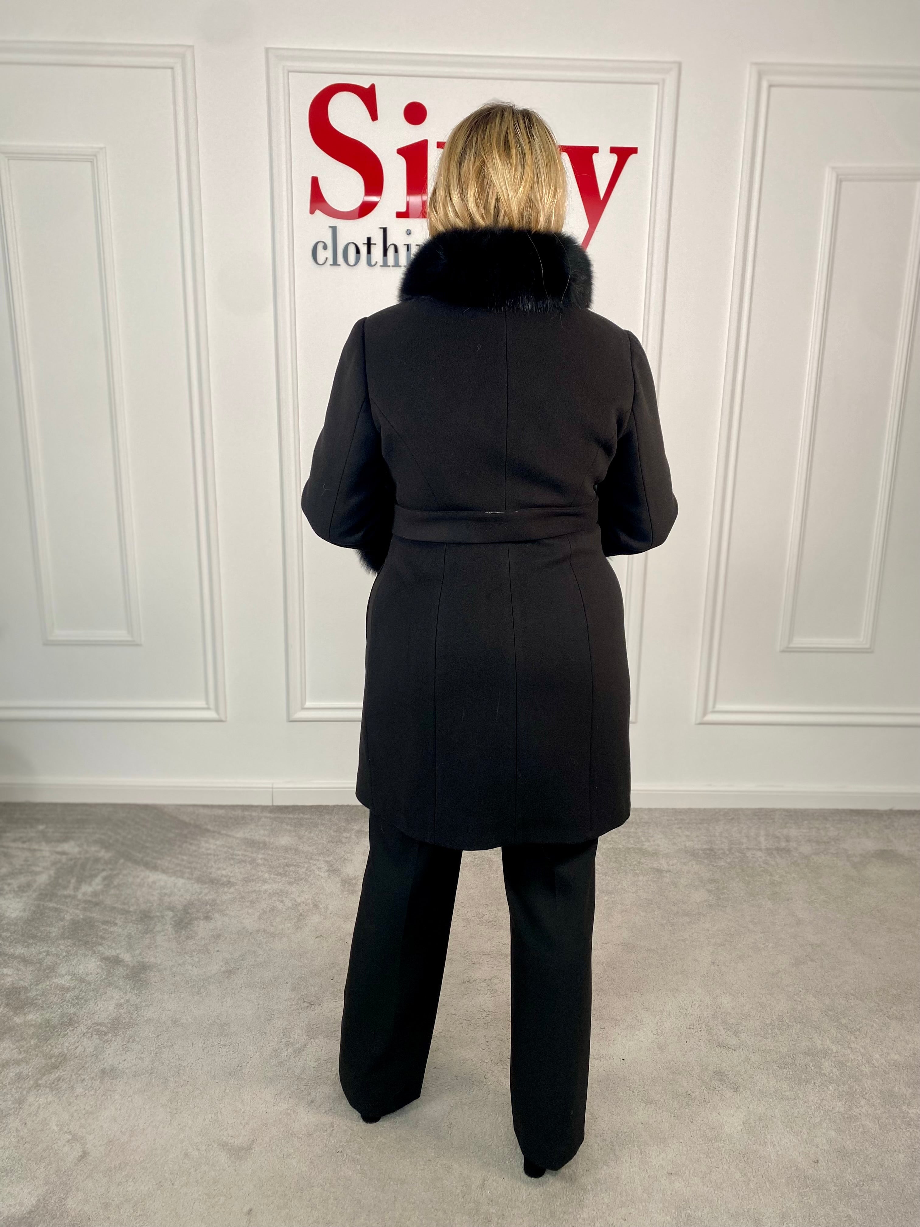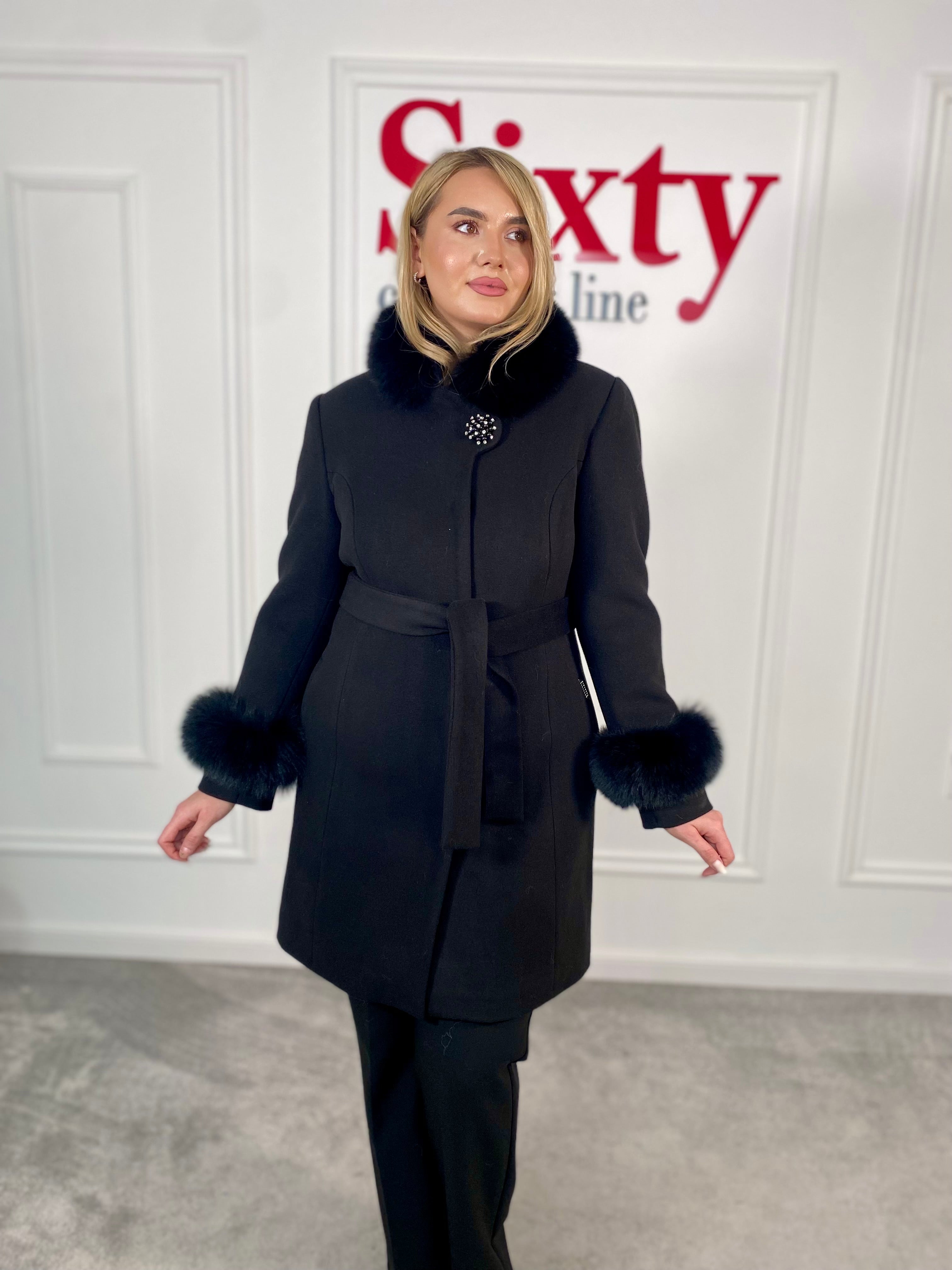 Palton lână și cașmir cu blană naturală Kasia.