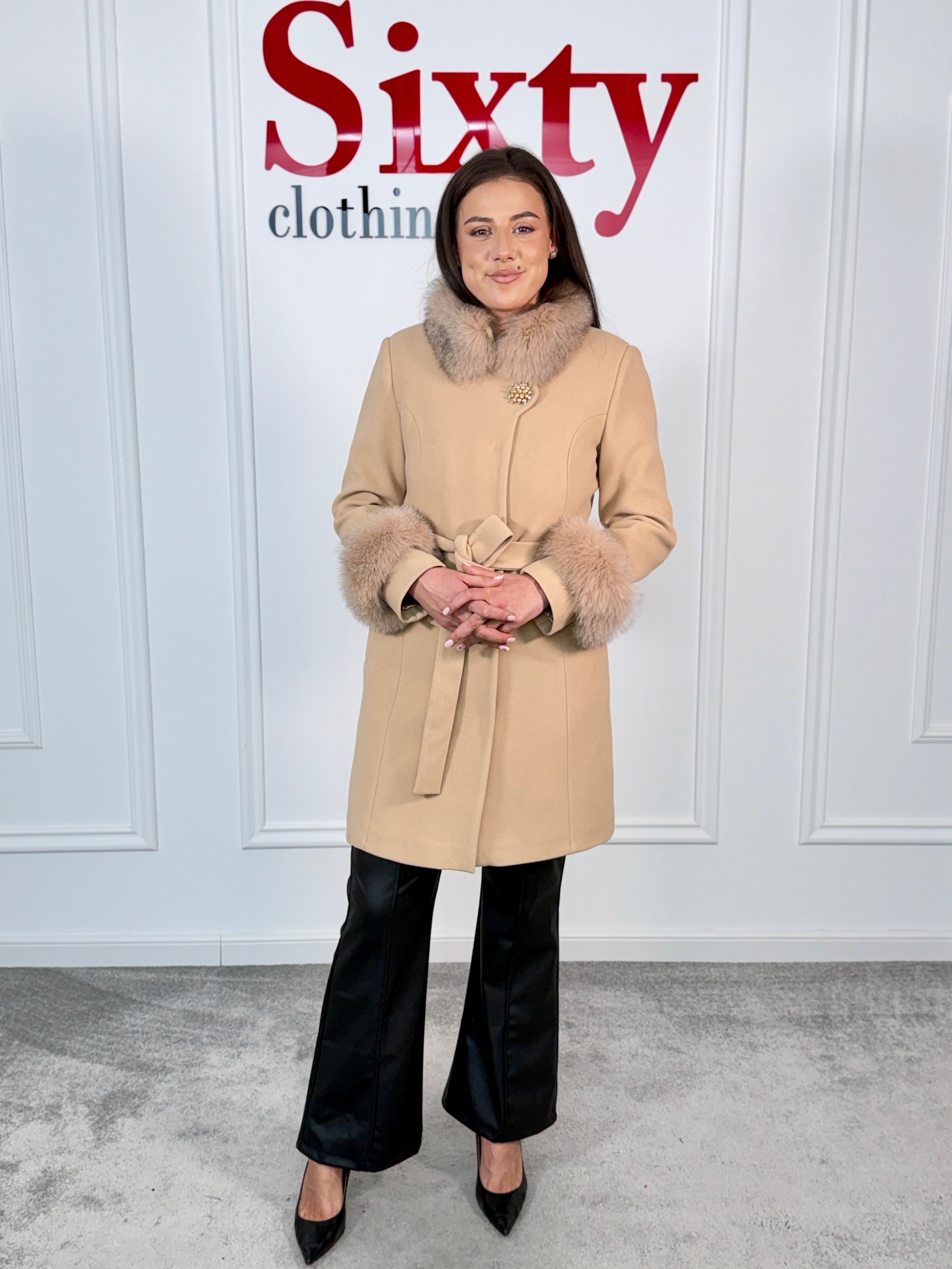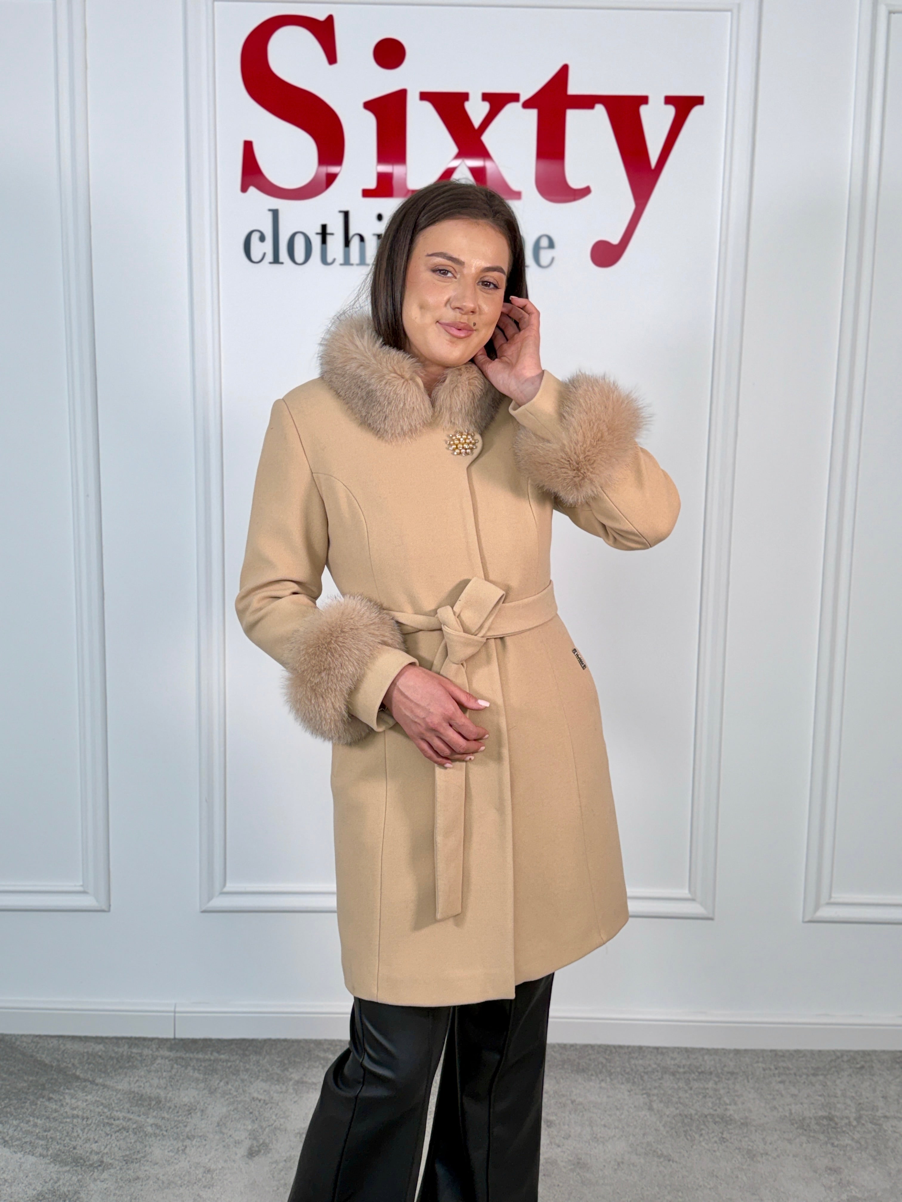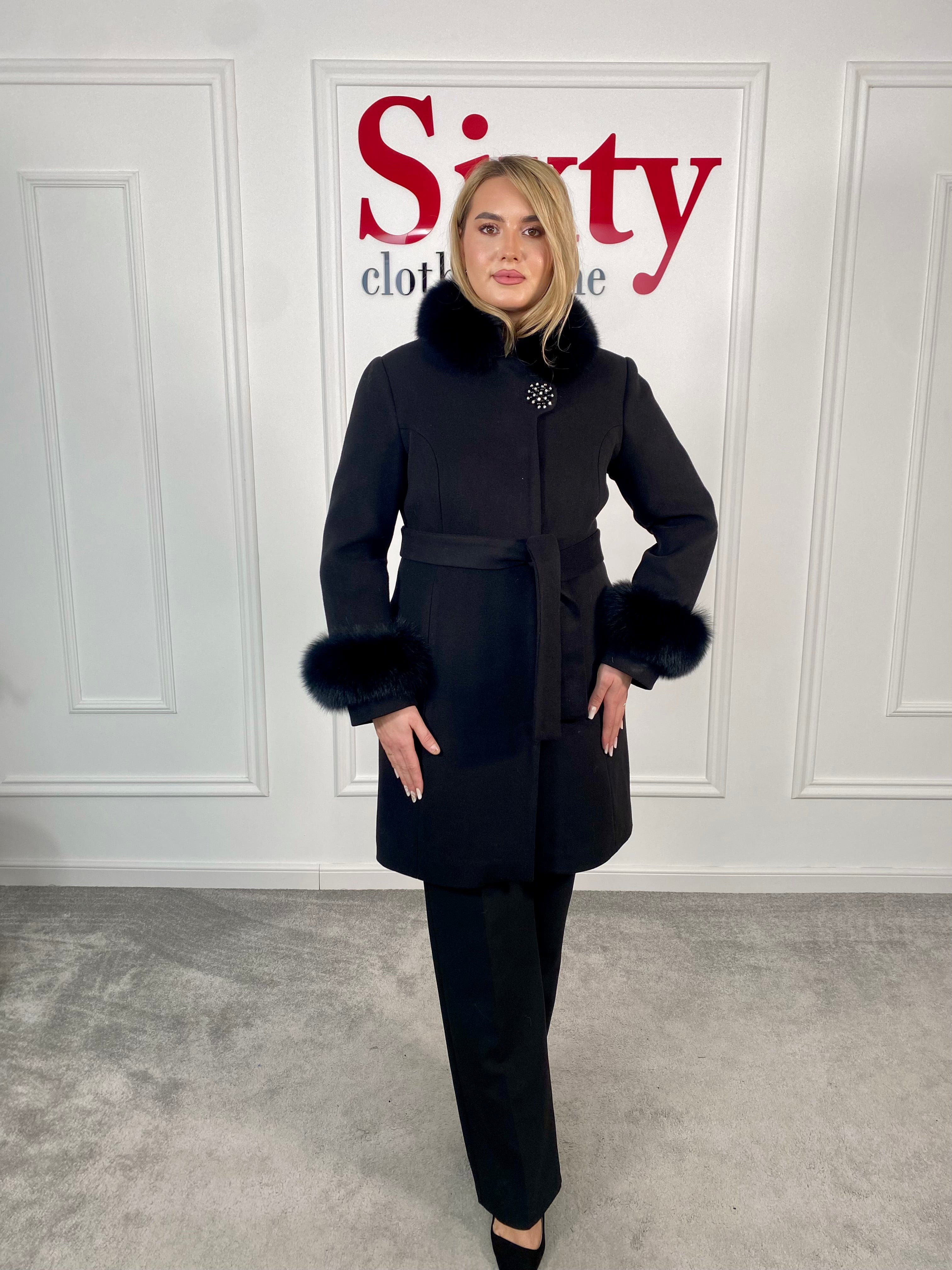 Palton lână și cașmir cu blană naturală Kasia.