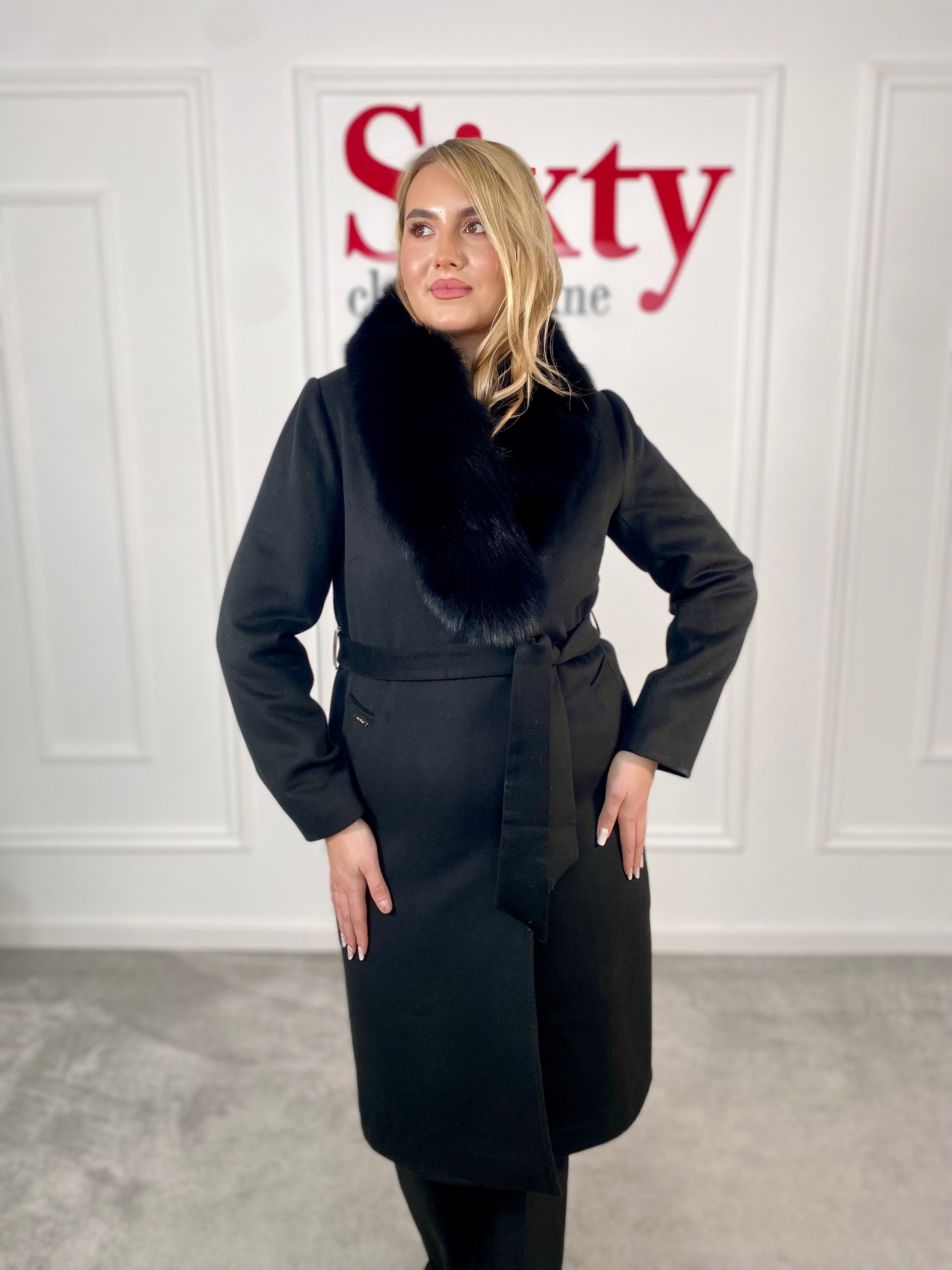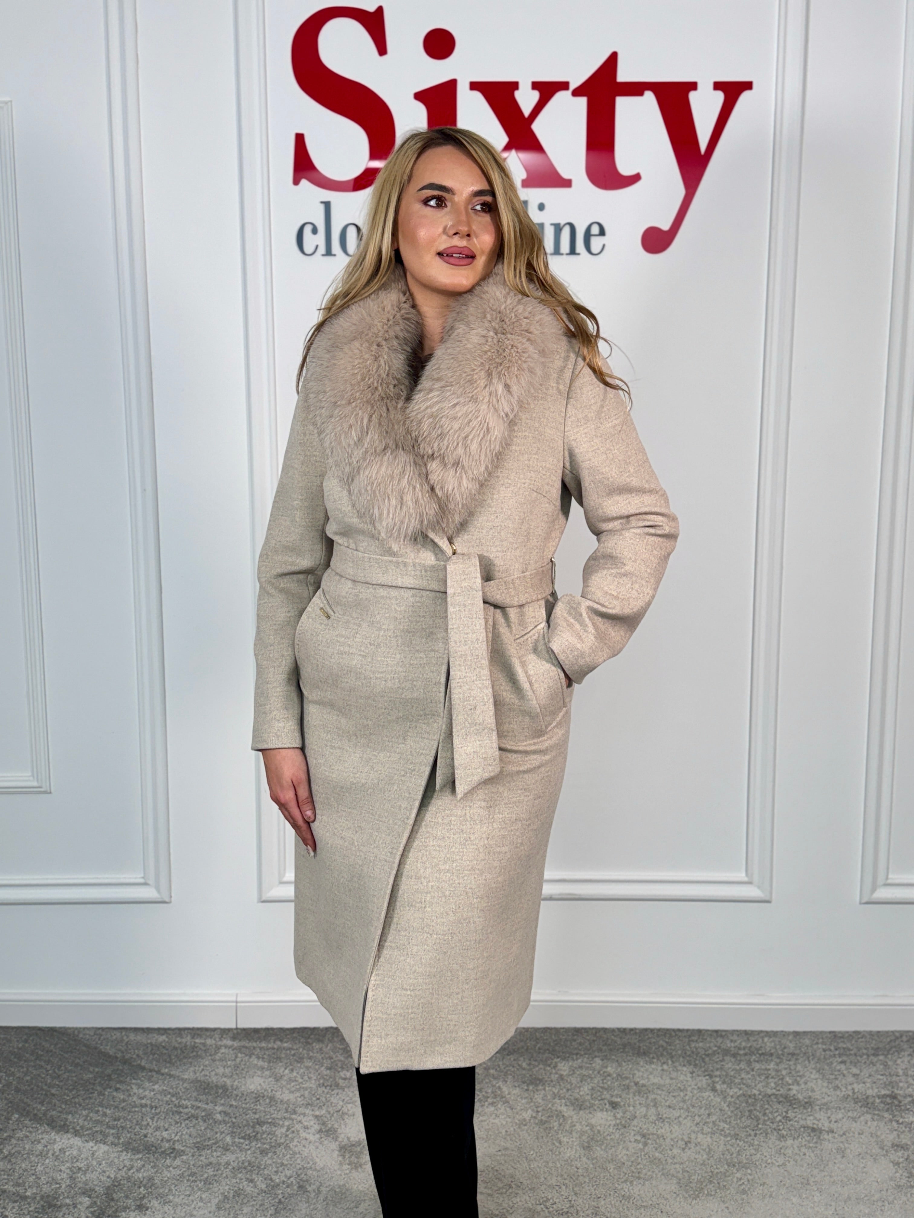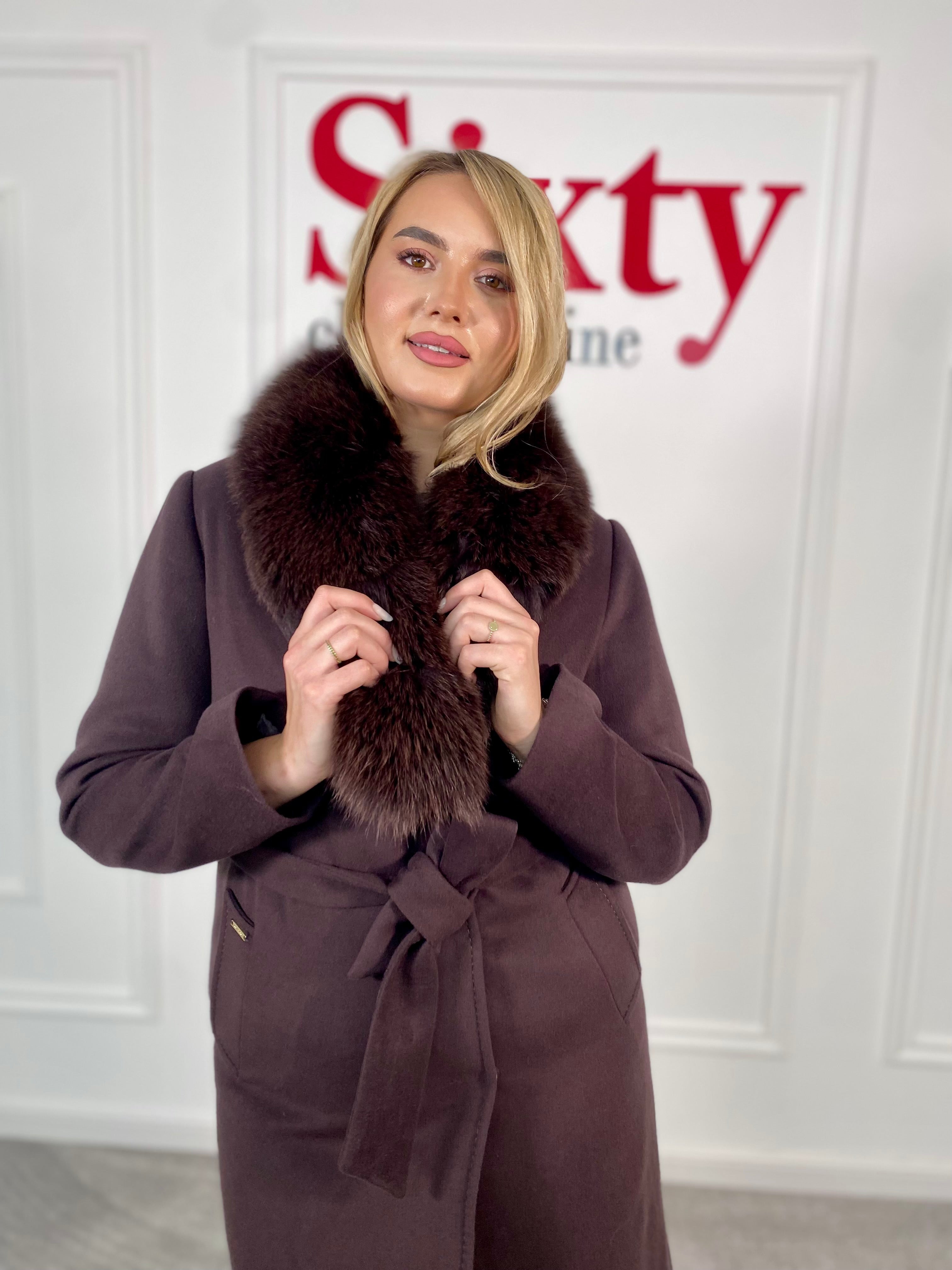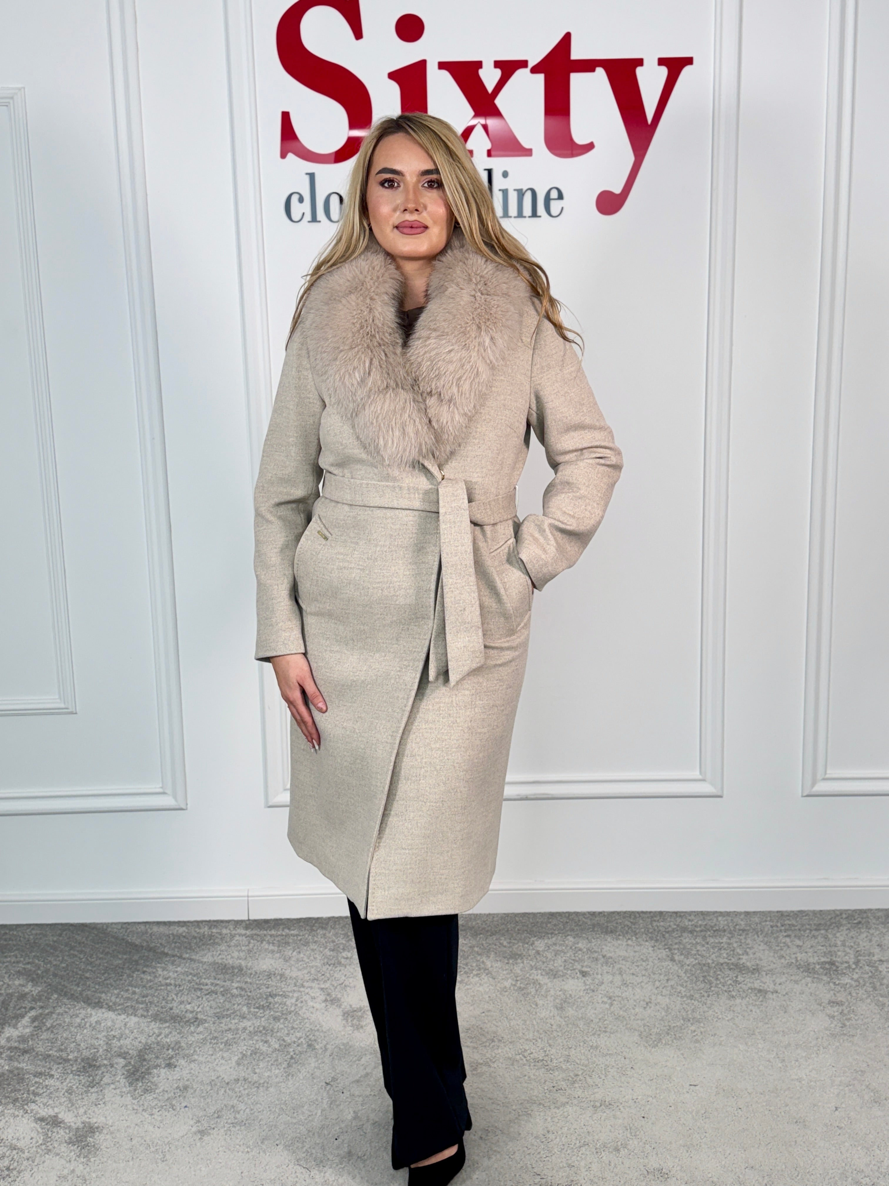 Palton lână și cașmir cu blană naturală Kenia.