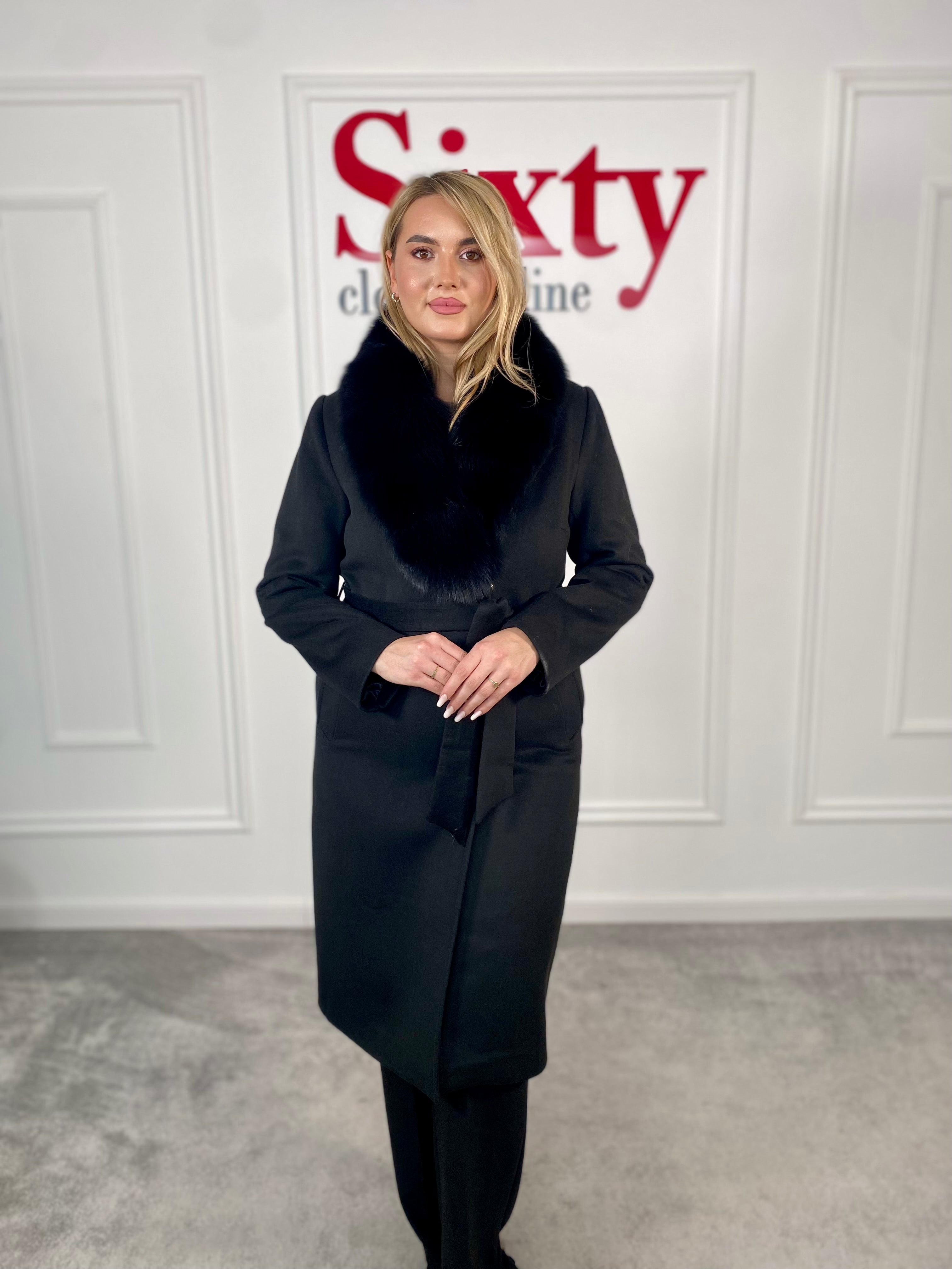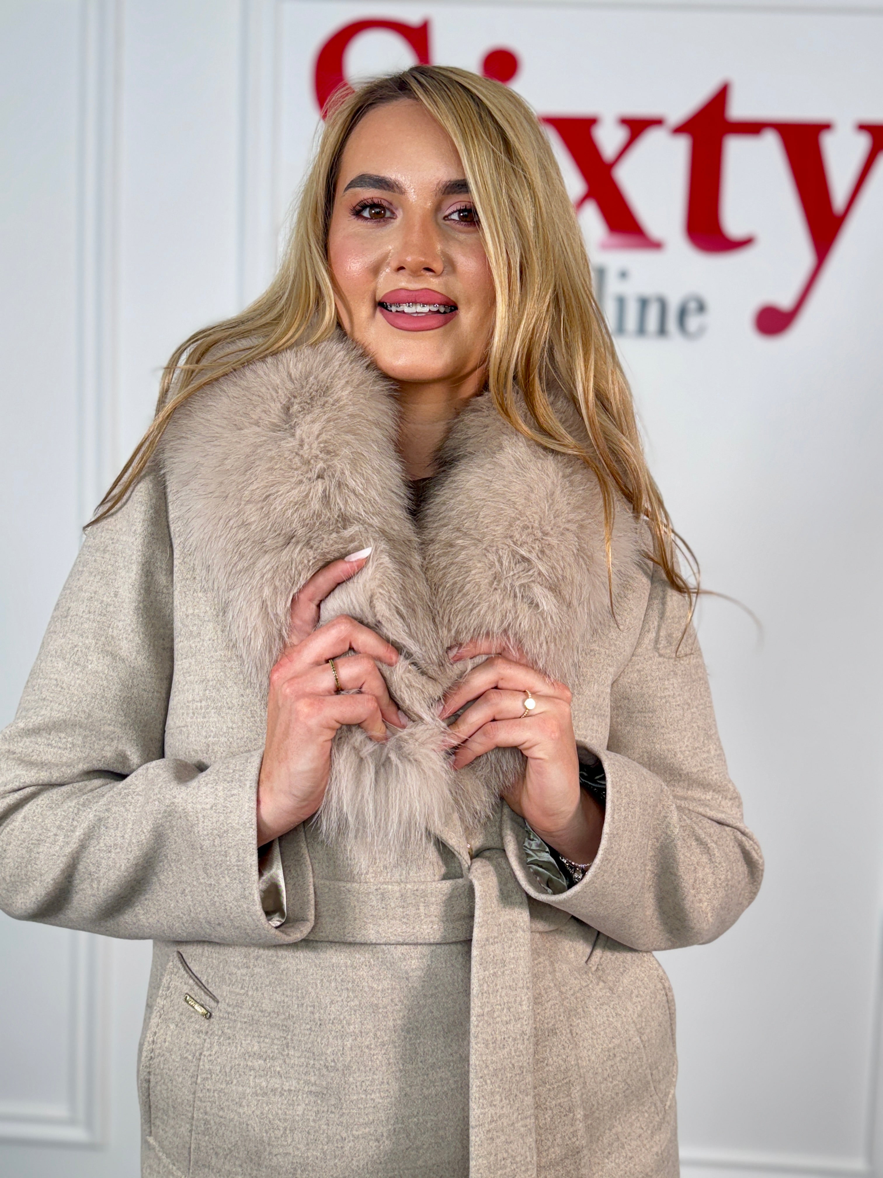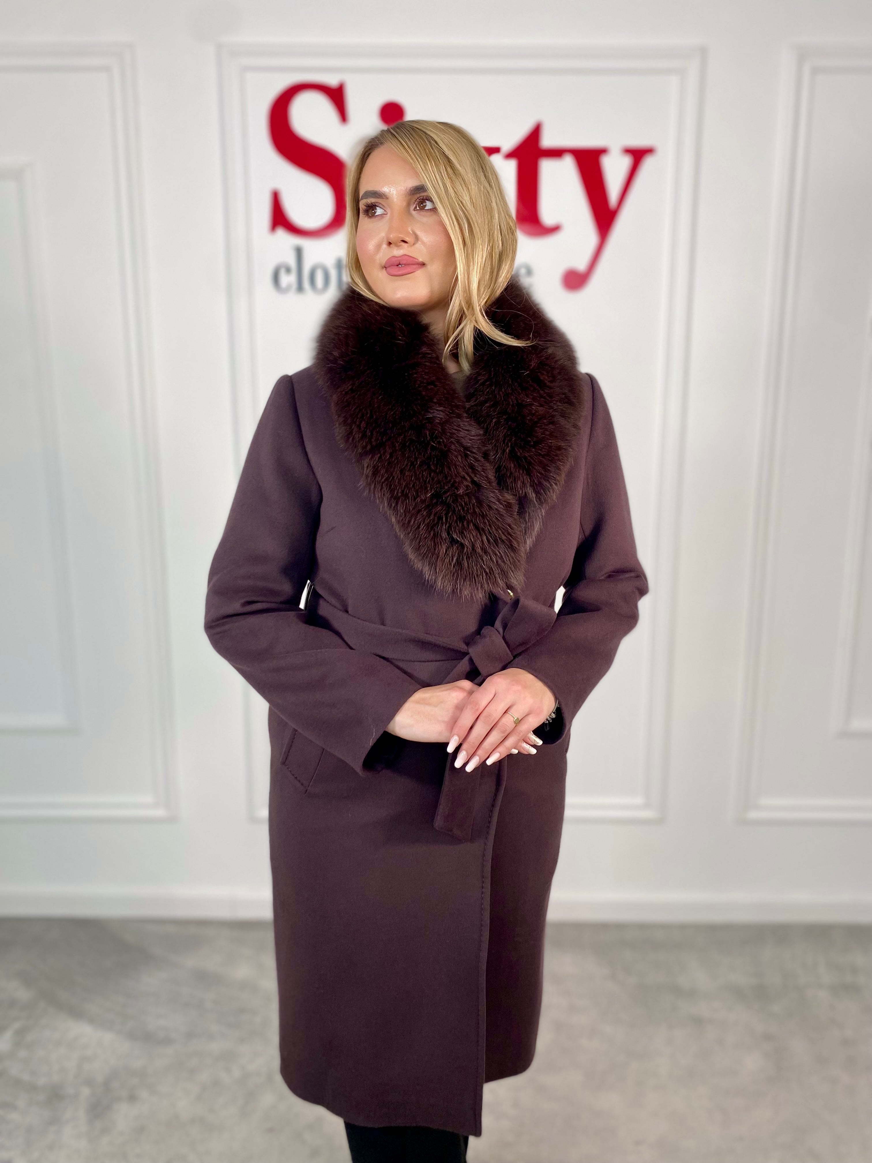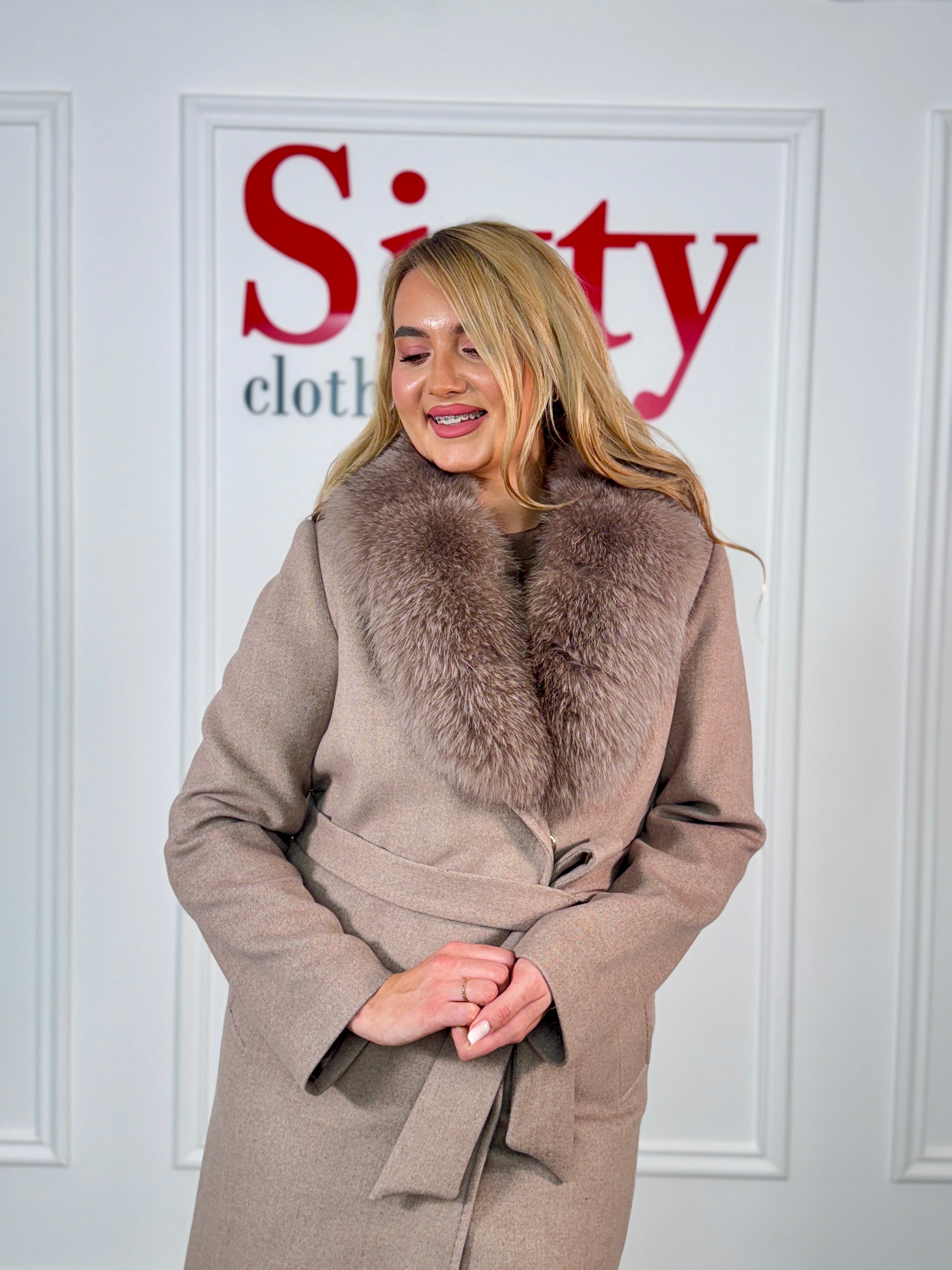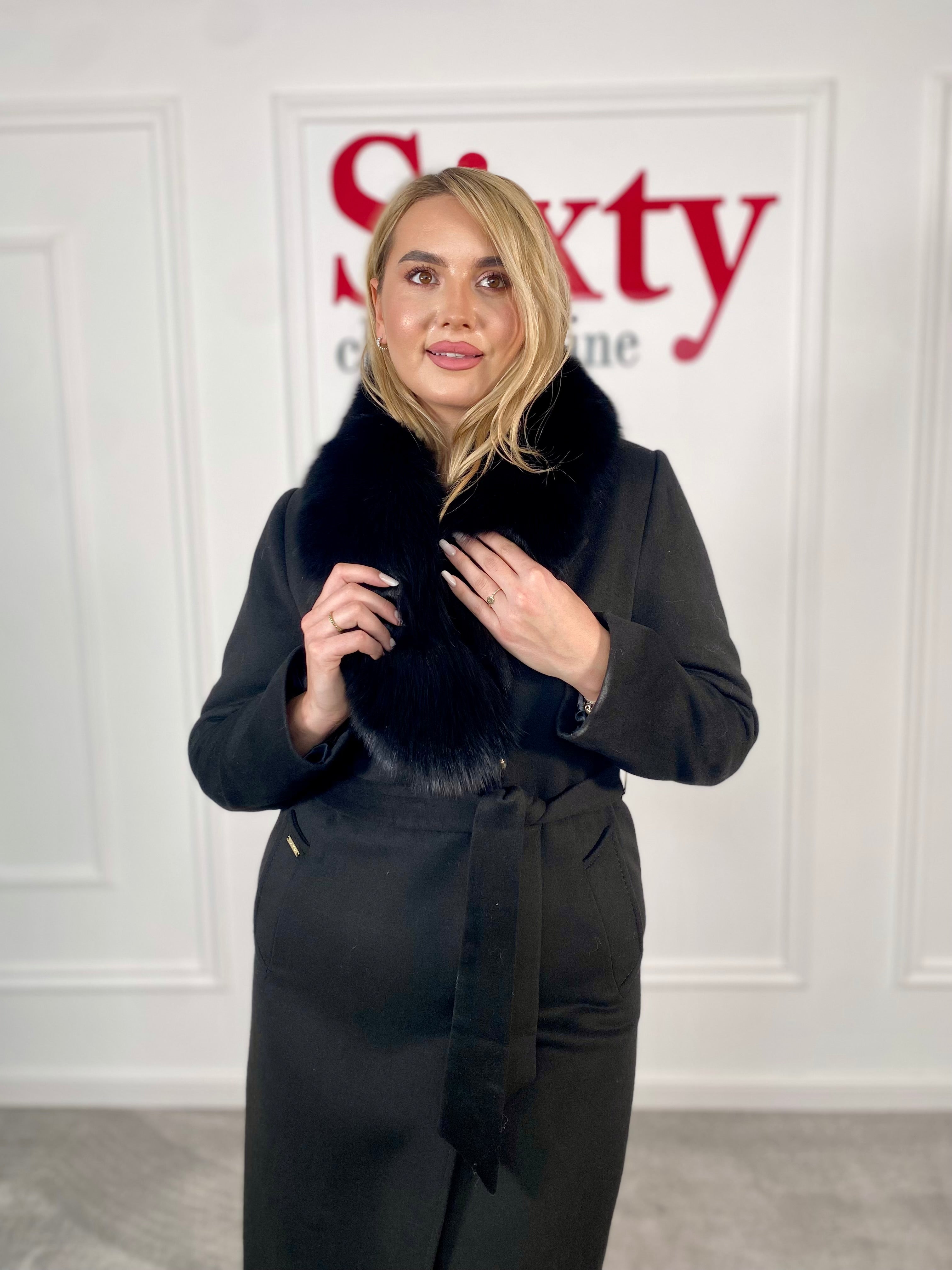 Palton lână și cașmir cu blană naturală Kenia.