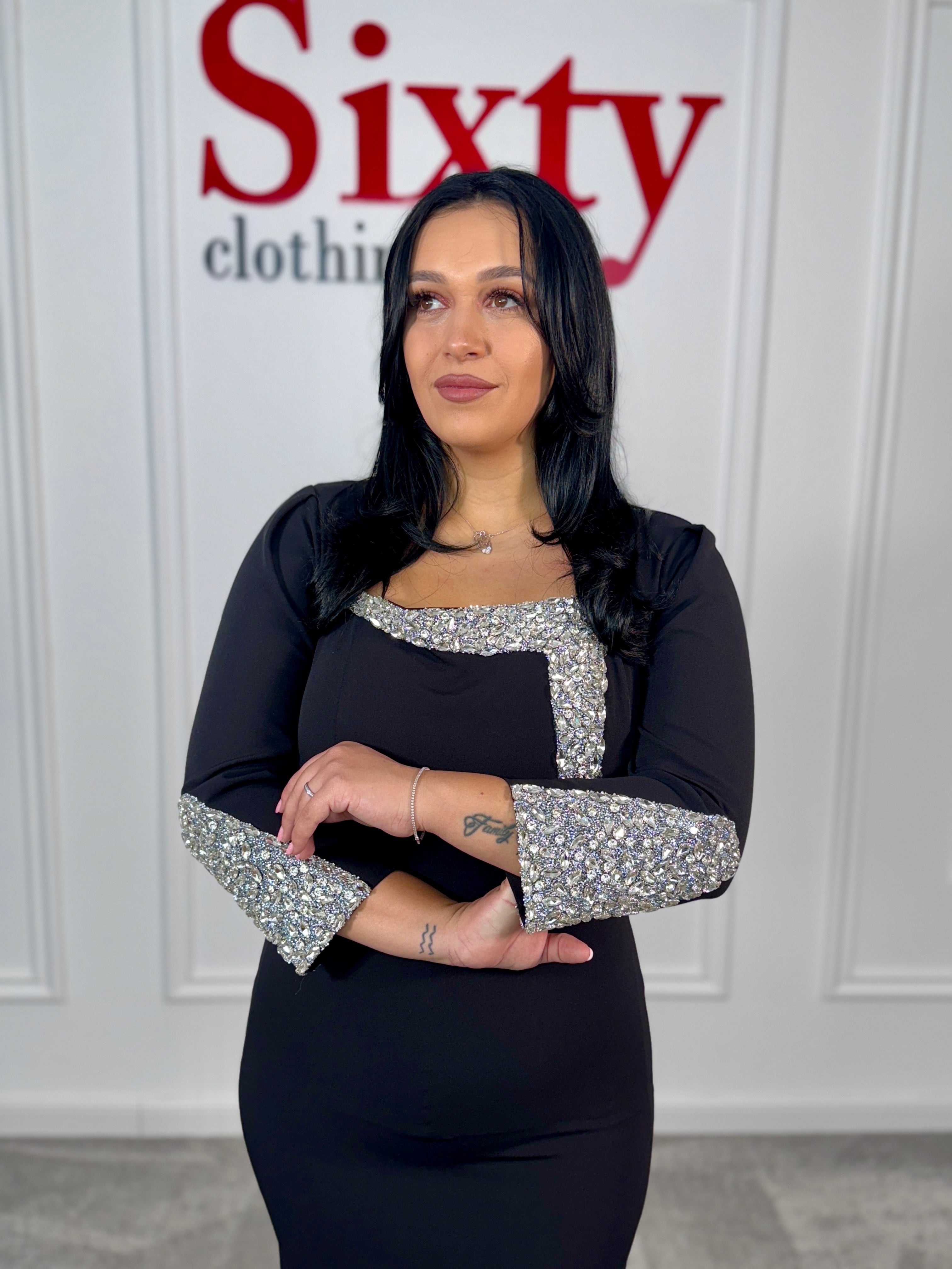 Transformați fiecare apariție într-un moment de pură eleganță cu rochia din stofă cu pietre Diandra!