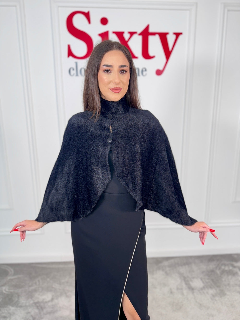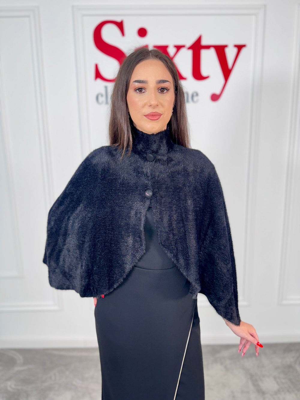 Adăugați eleganță și căldură garderobei dumneavoastră cu capa din blană ecologică Alis!