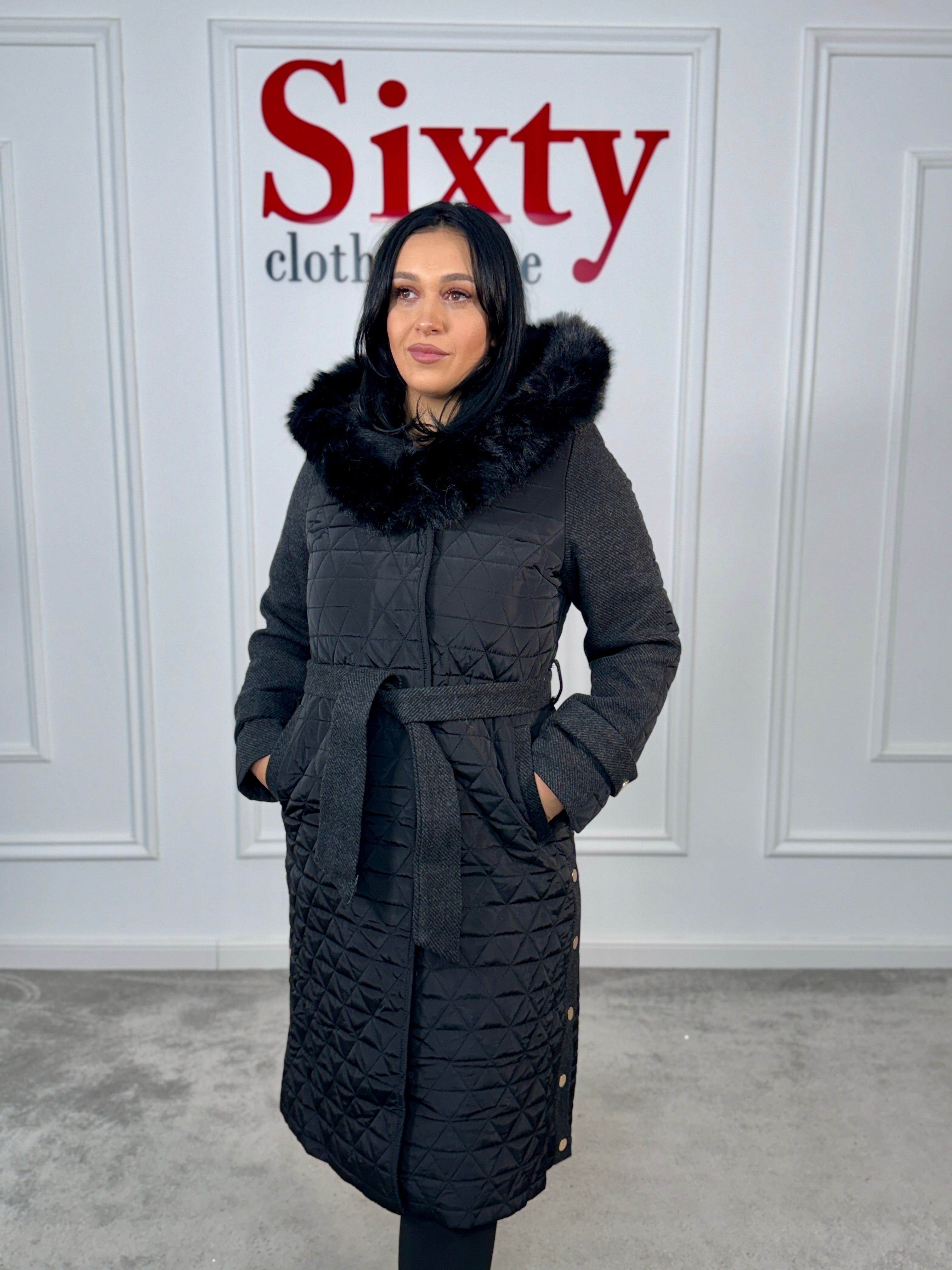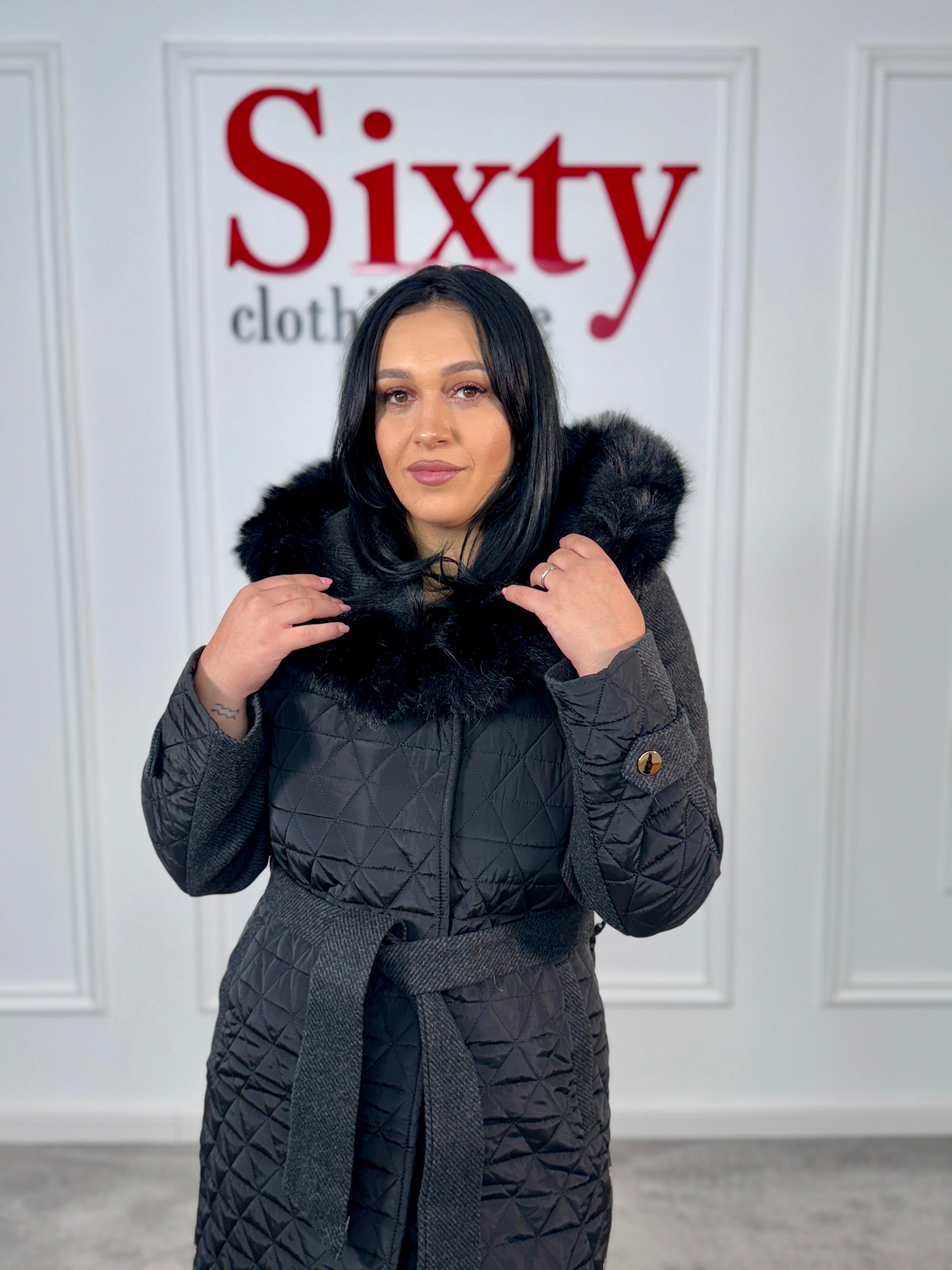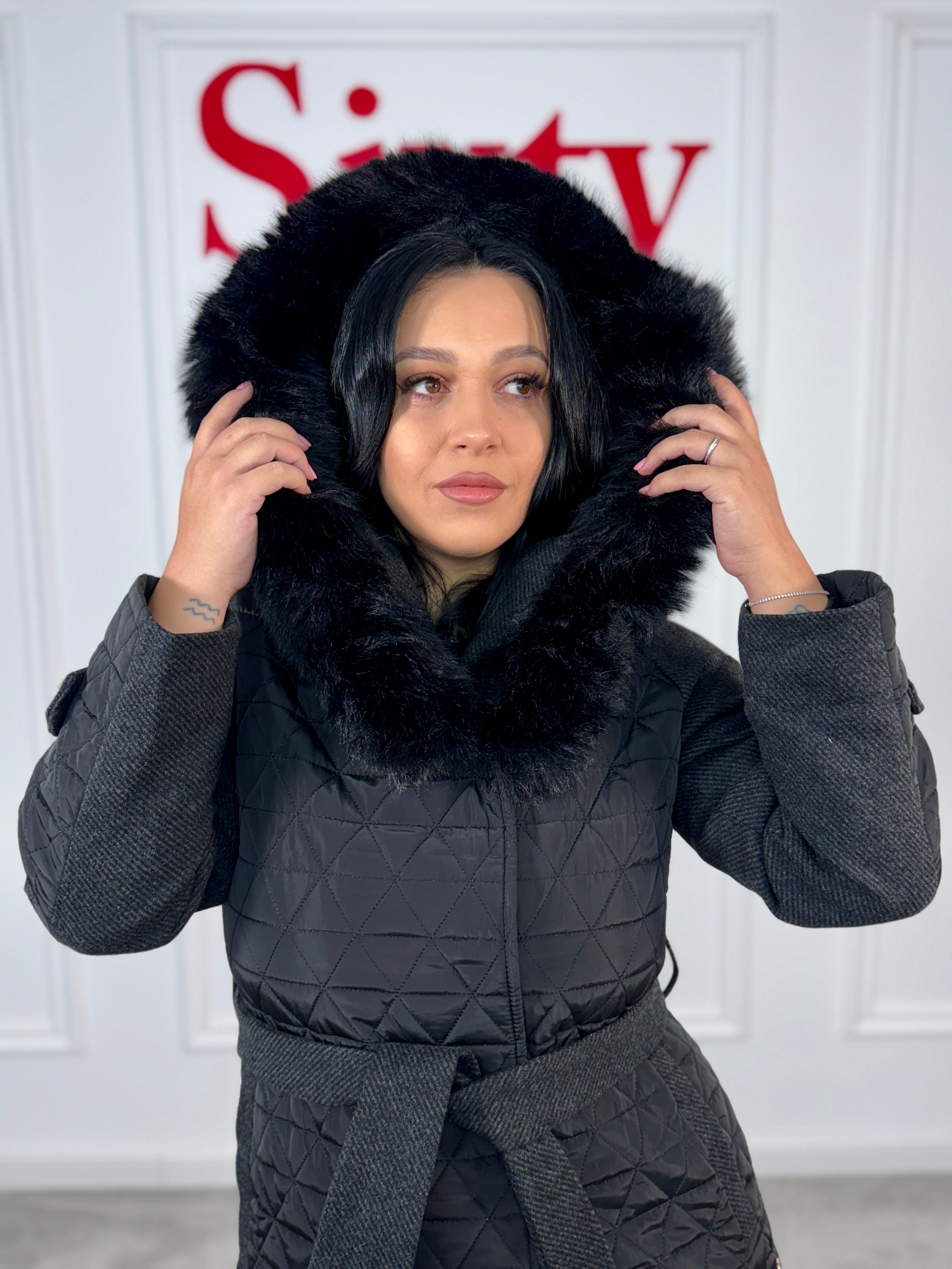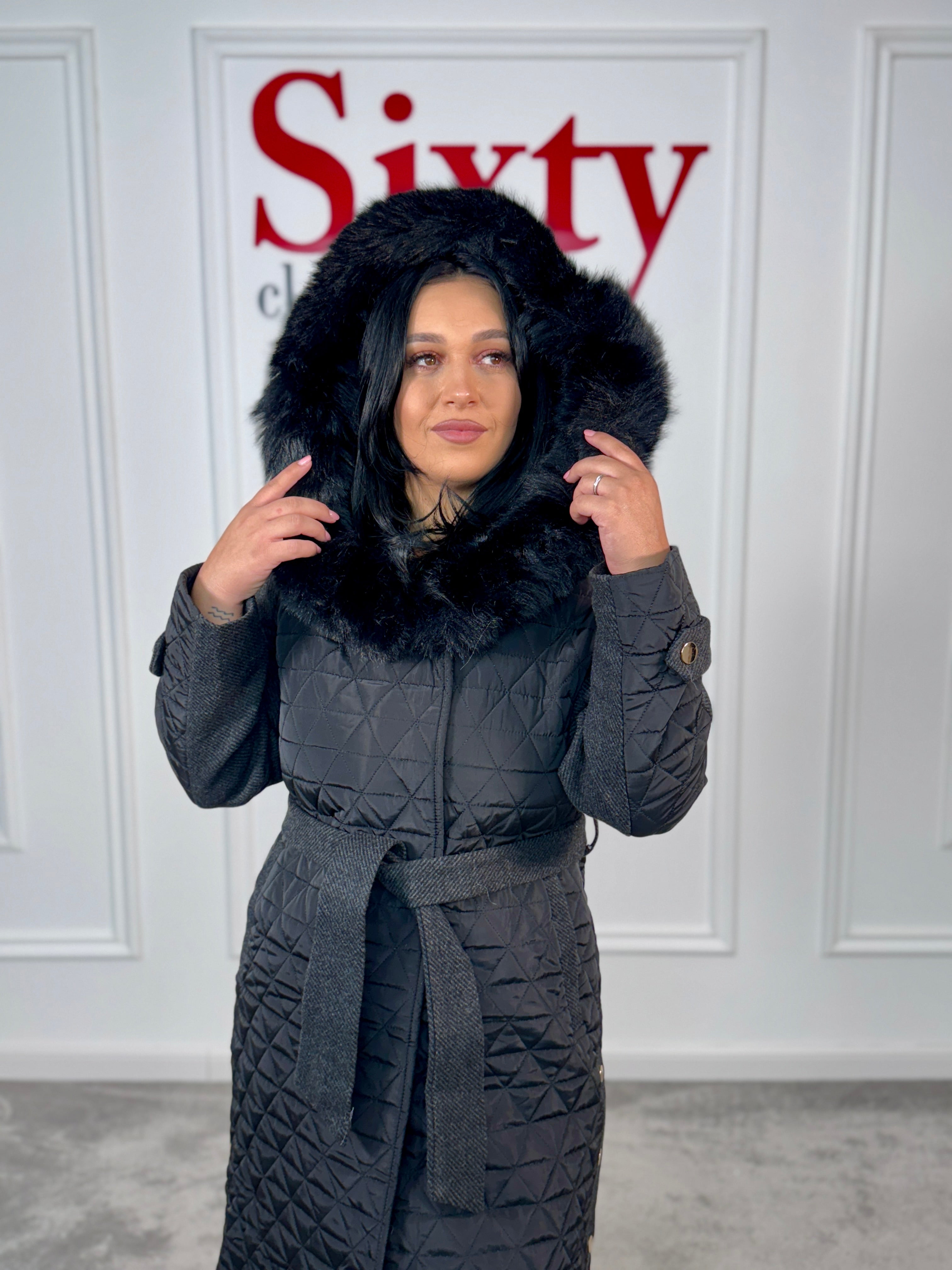 Palton fas cu blană ecologică Anda