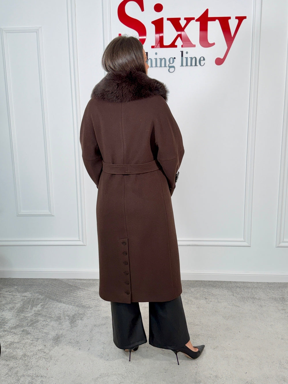 Palton lână și cașmir cu blană naturală Amira.
