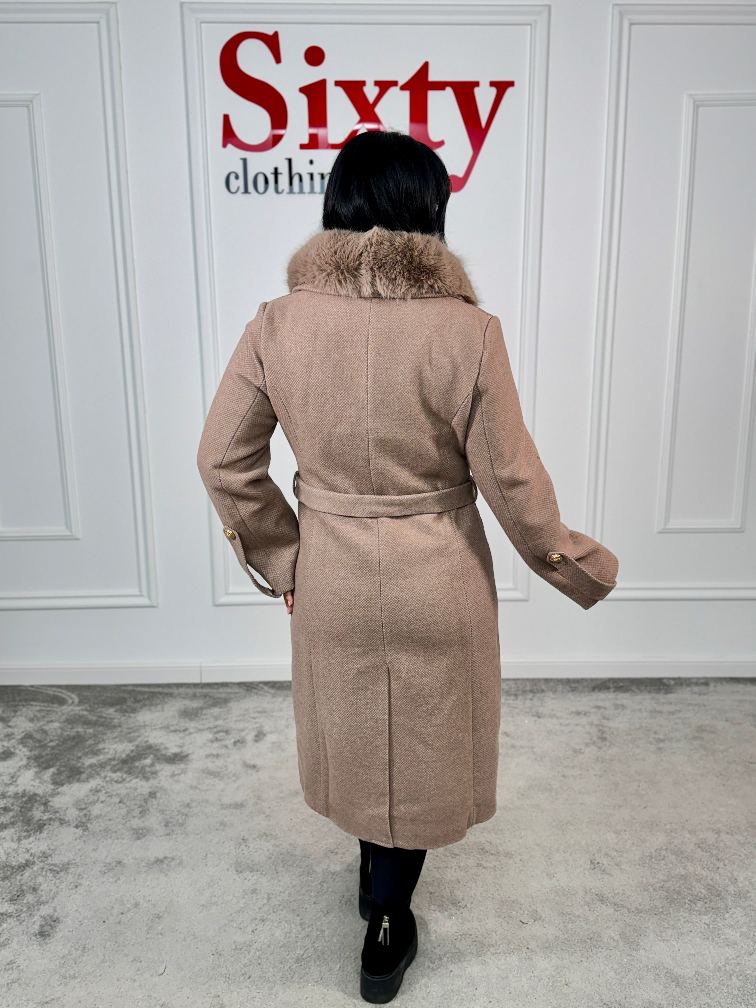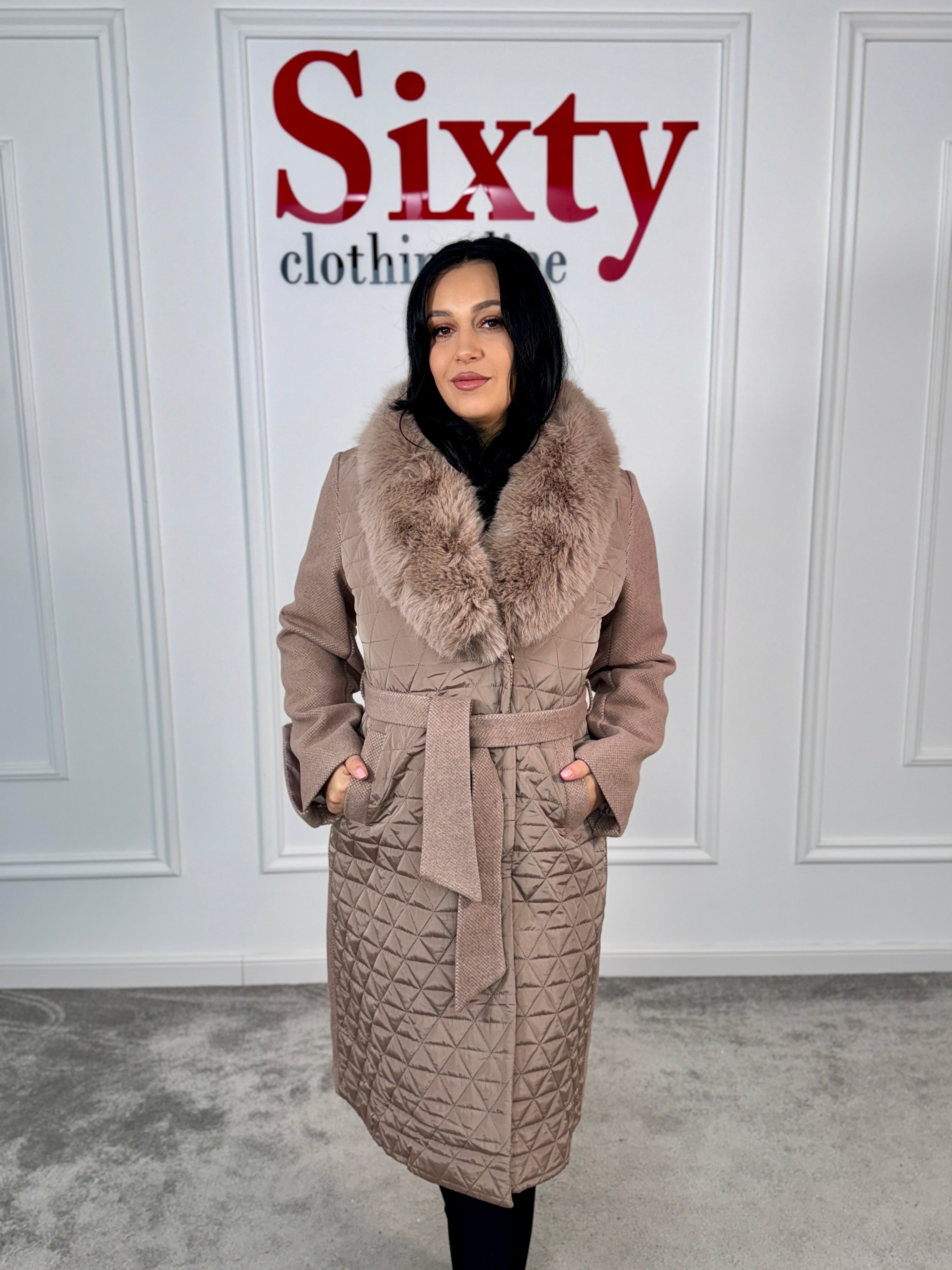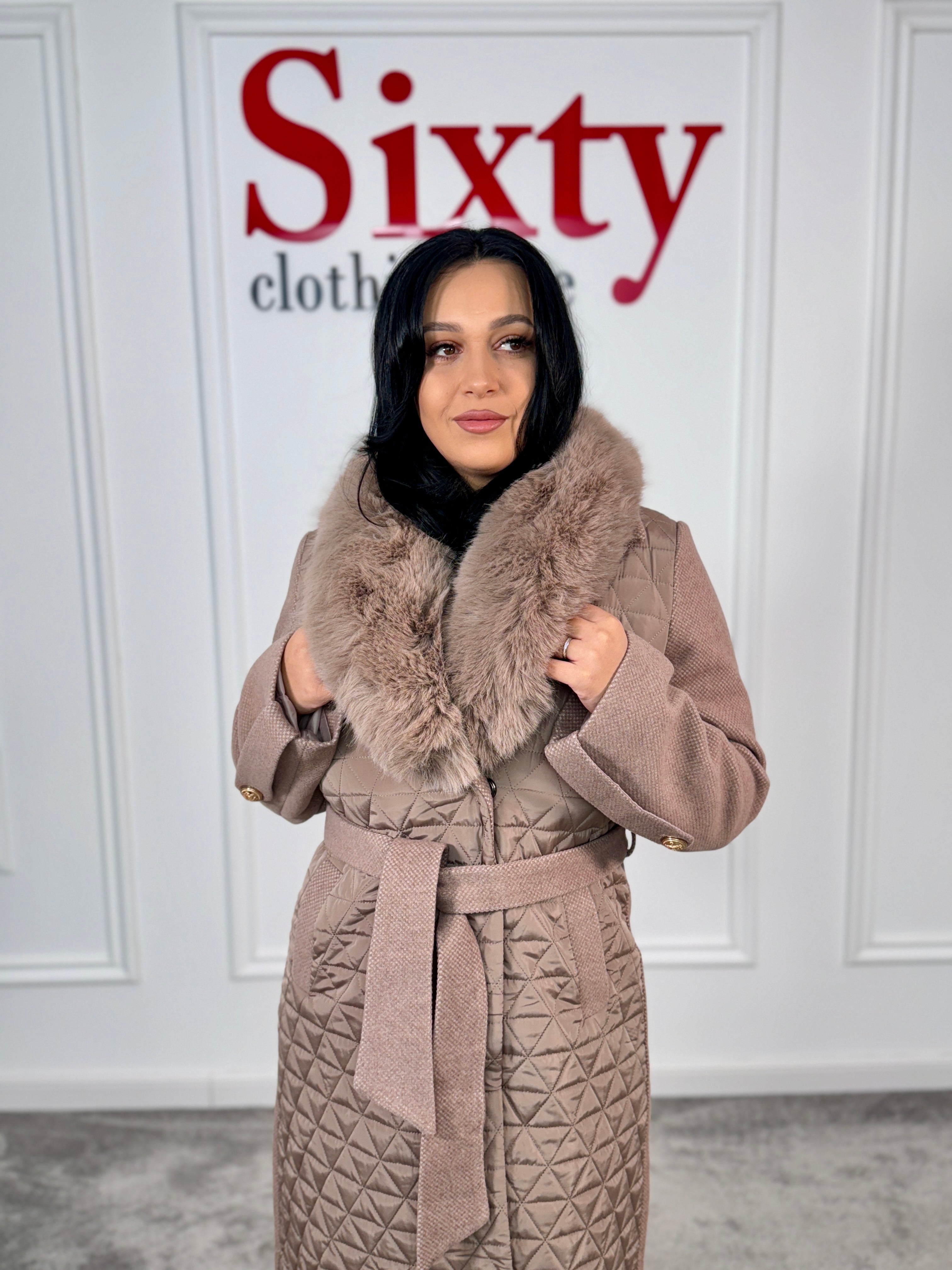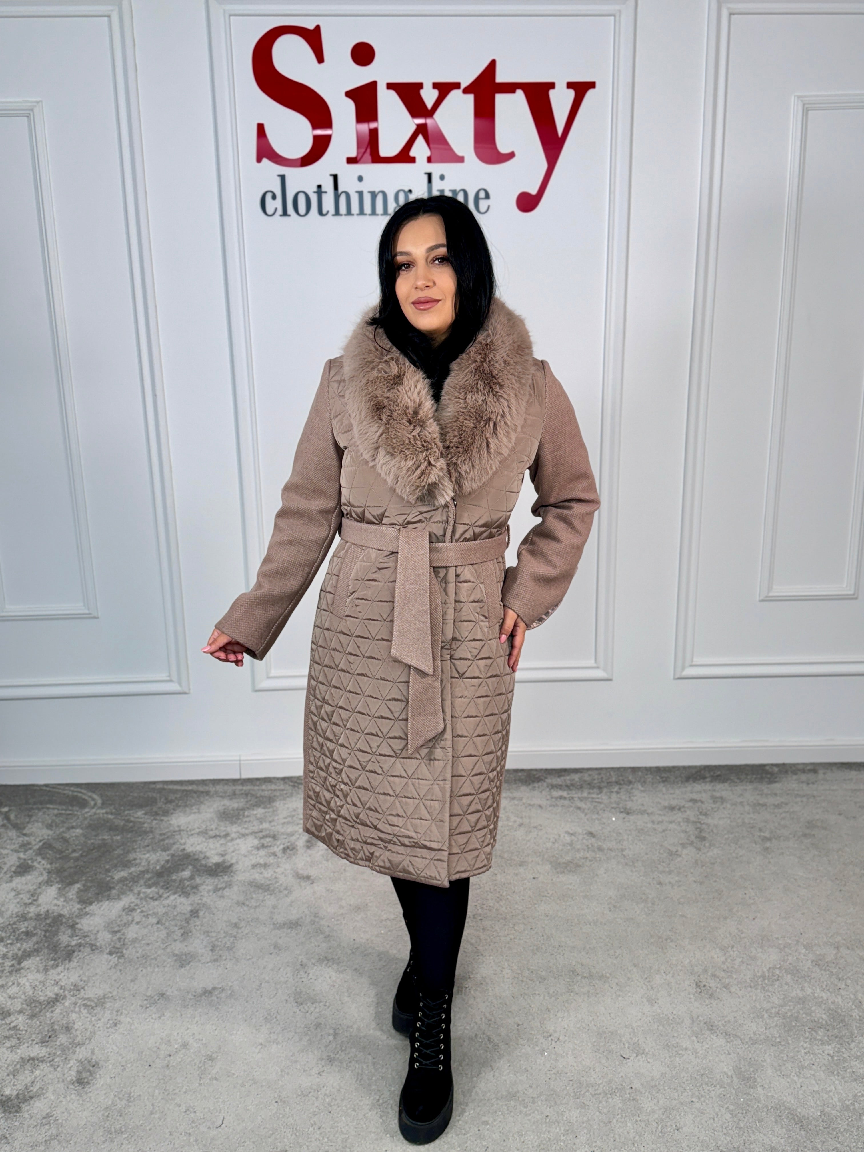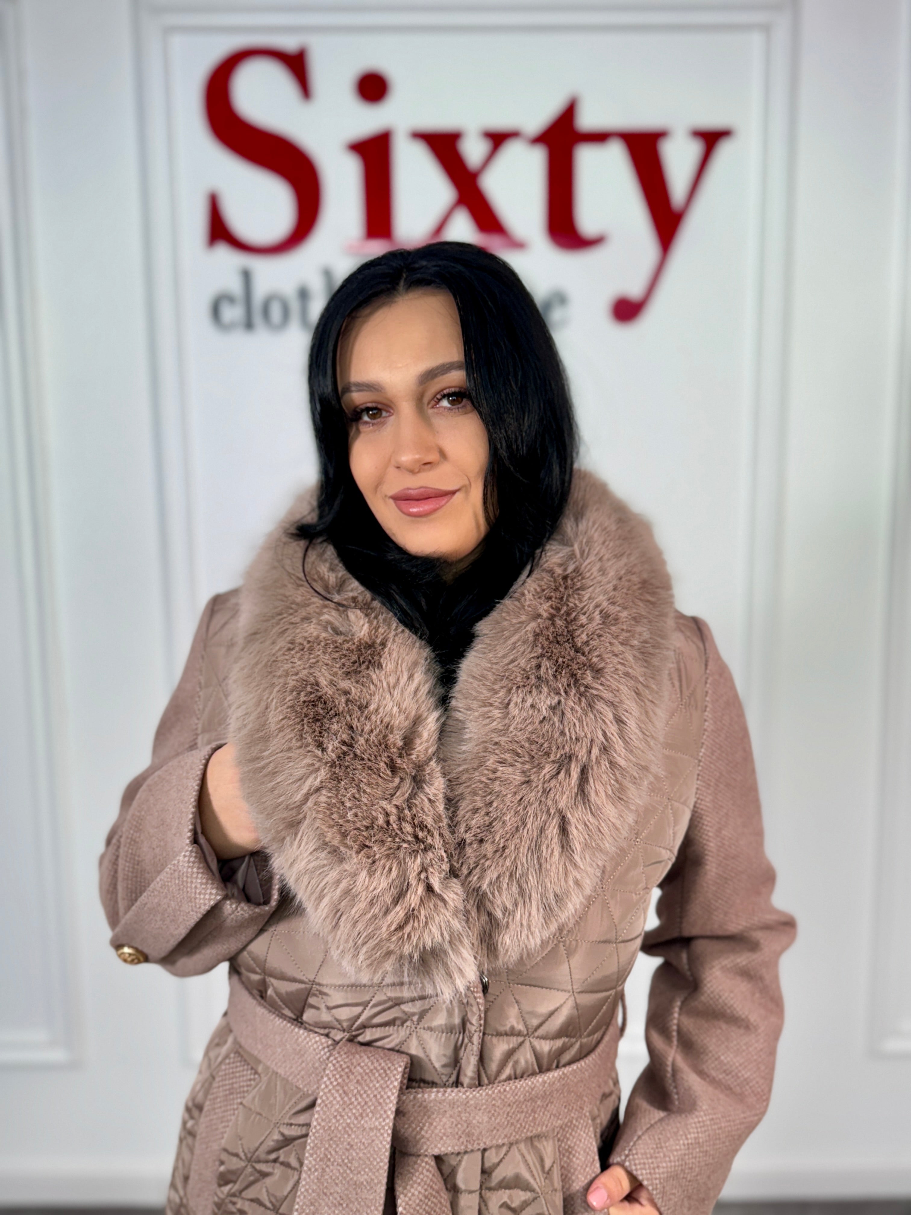 Palton stofă cu blană ecologică Nora.