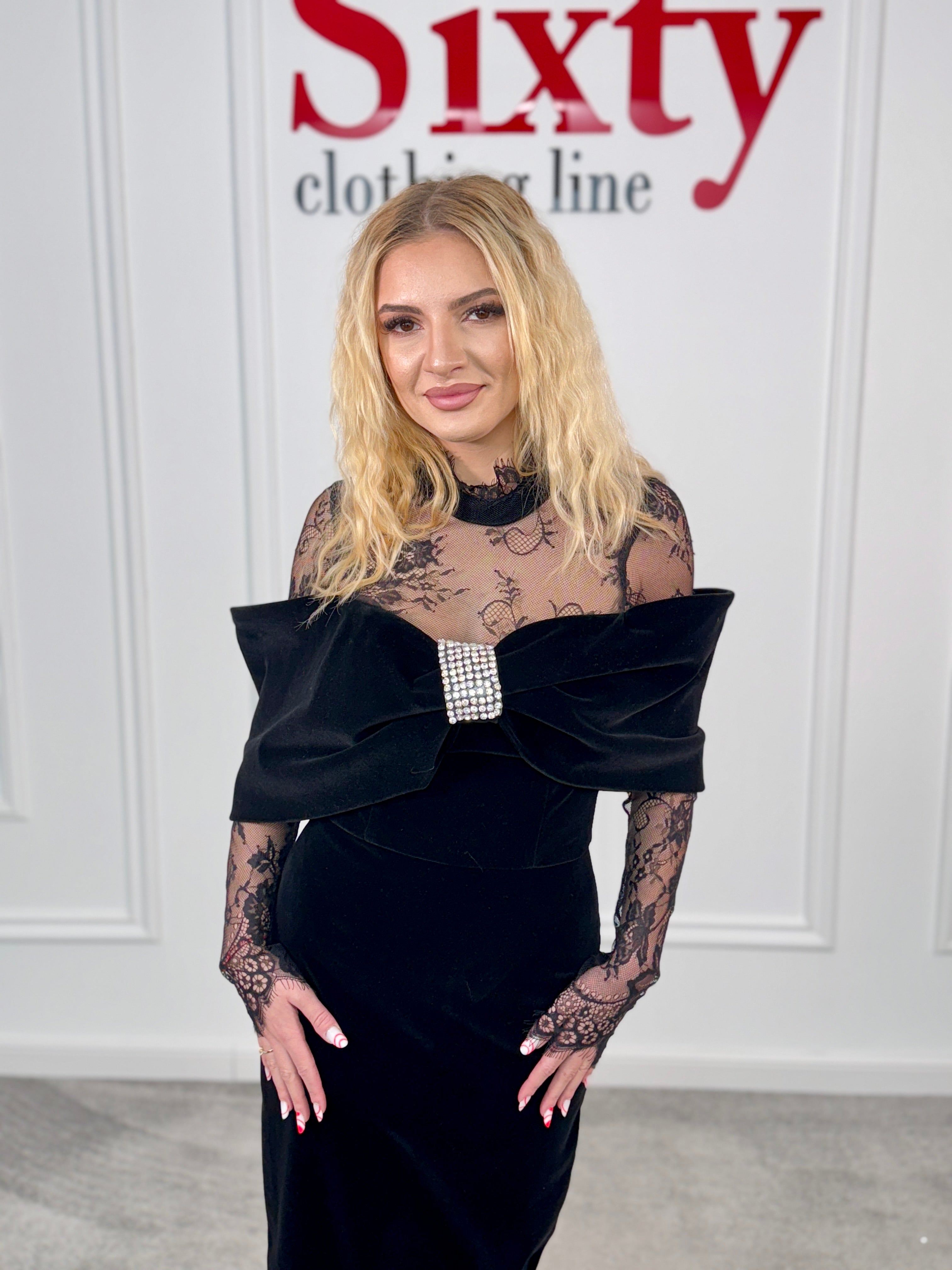 Rochie catifea cu dantela Eseva