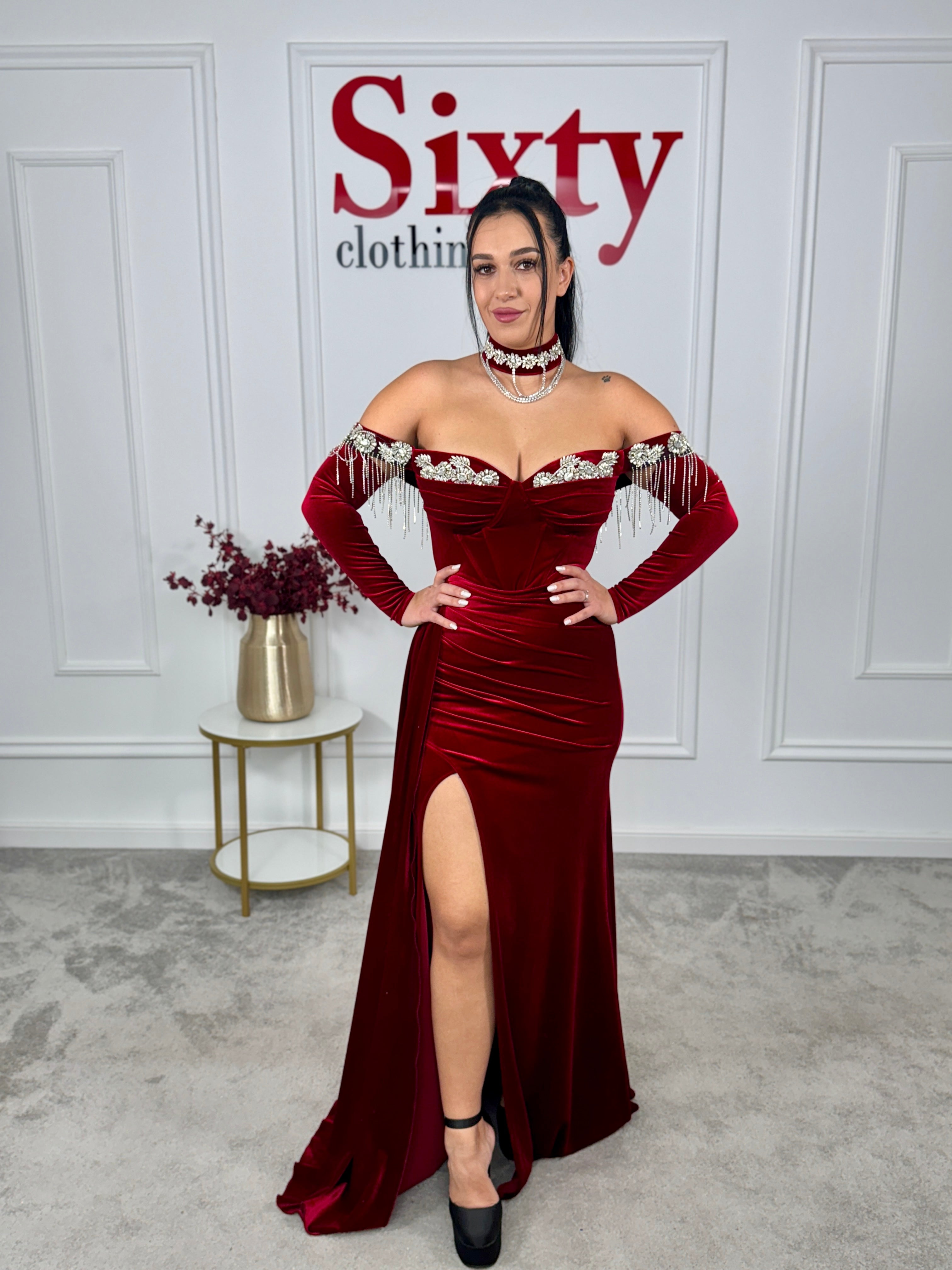 Rochie catifea cu pietre Elida