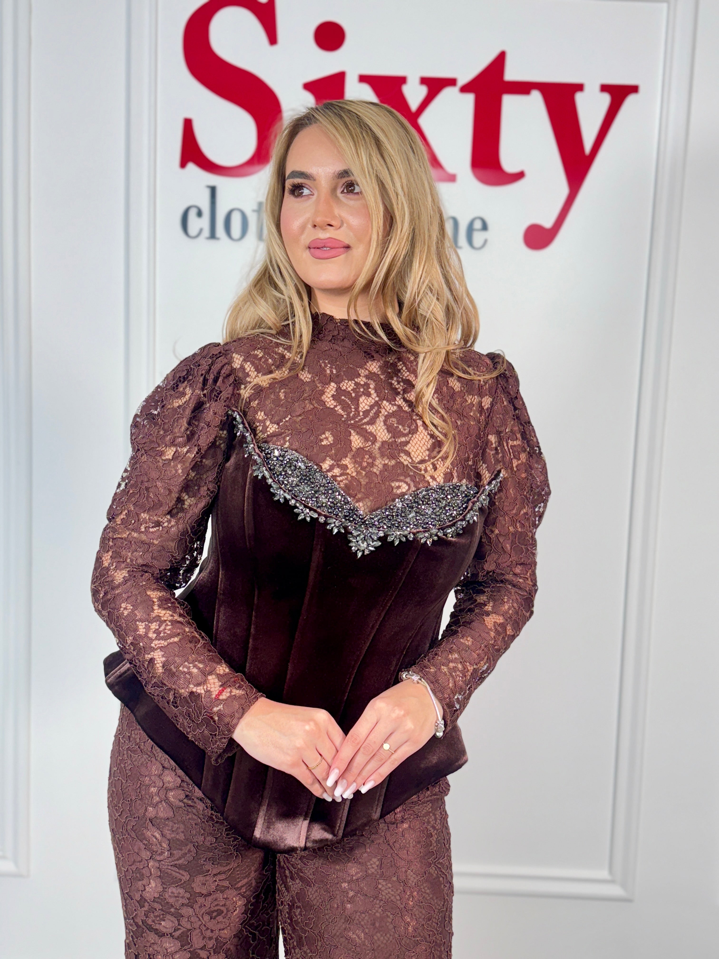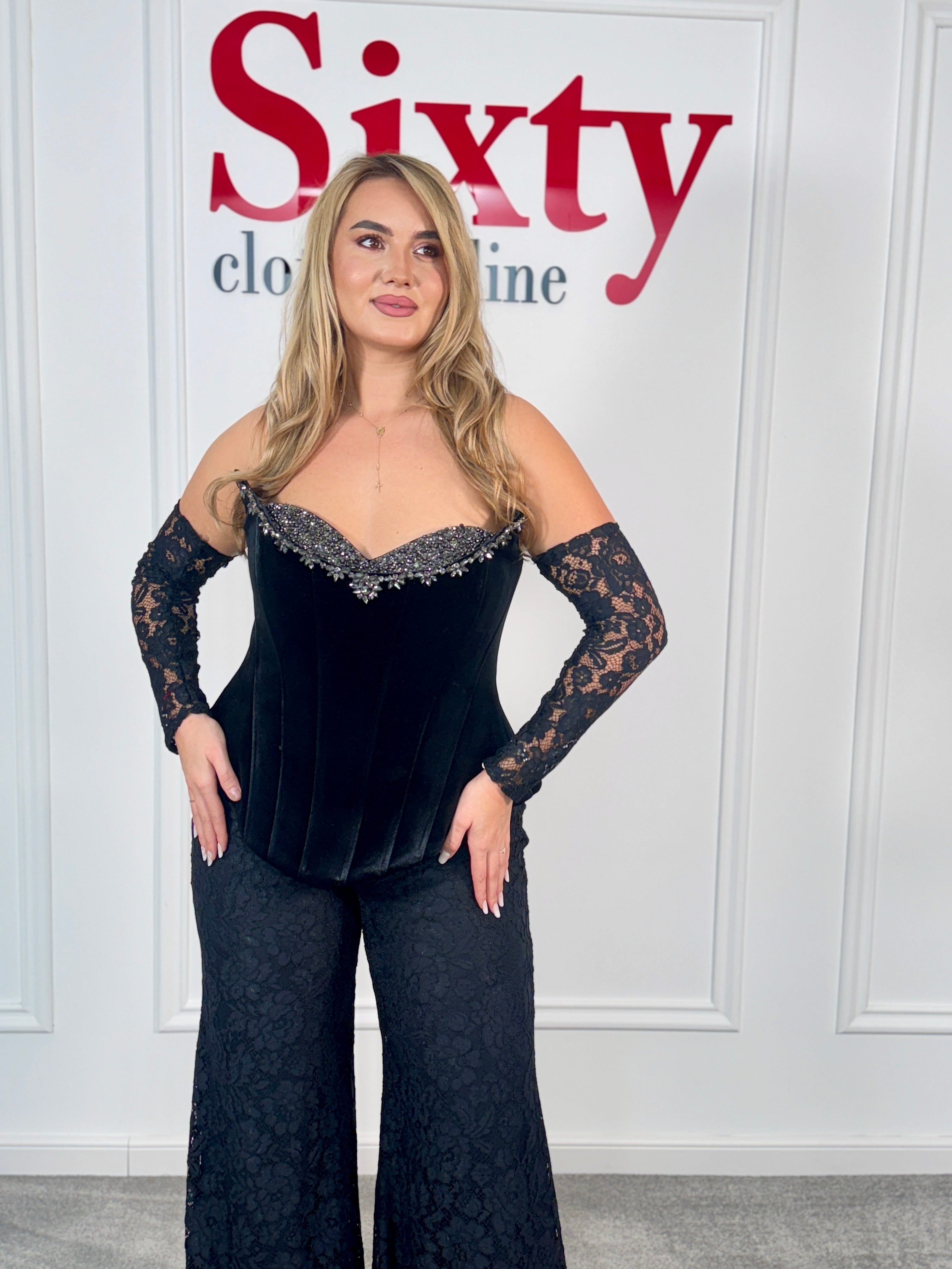 Salopetă dantelă și catifea Elia.